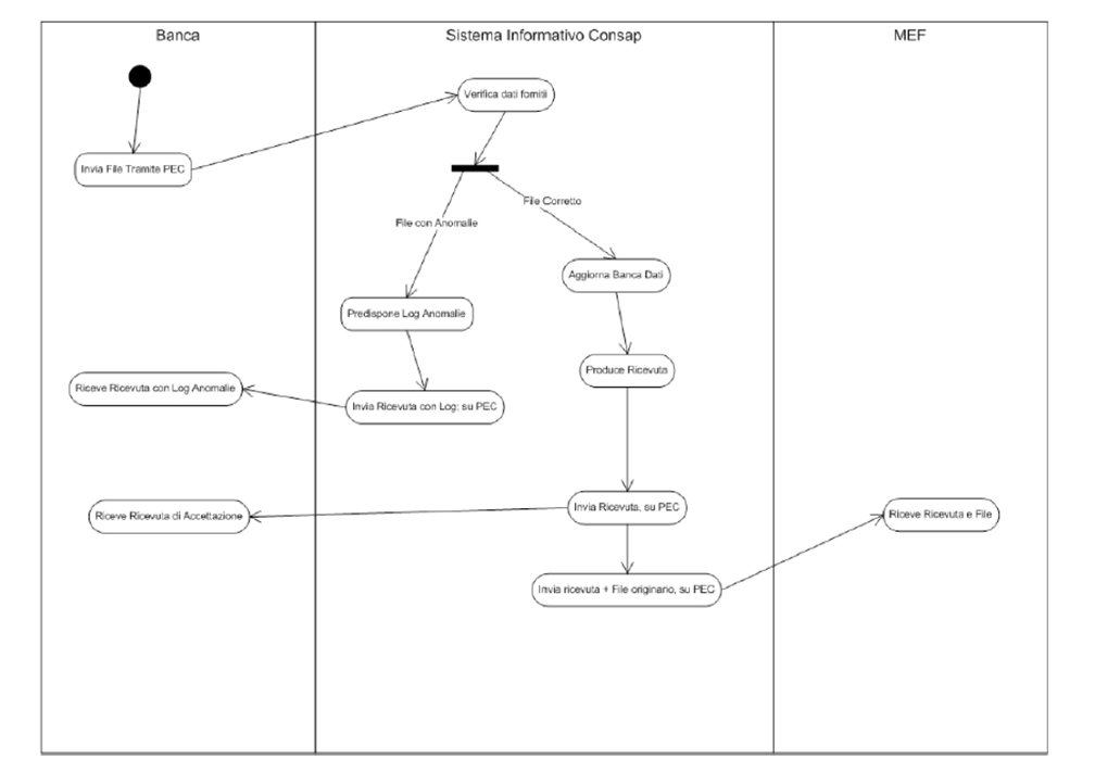 · Il sistema informatico della Consap preleva dalla casella di posta elettronica l’allegato e lo sottopone alla verifica formale di conformità ai tracciati record;