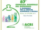 Sotto l’Alto Patronato del Presidente della Repubblica, oggi sarà celebrata a Roma l’87ª Giornata Mondiale del Risparmio, da sempre organizzata dall’Acri, l’Associazione che rappresenta collettivamente le Fondazioni di origine bancaria e le Casse di Risparmio Spa. Interverranno il Presidente dell’Acri Giuseppe Guzzetti, il Presidente dell’Abi Giuseppe Mussari, il Governatore della Banca d’Italia Mario Draghi, il Ministro dell’Economia e delle Finanze Giulio Tremonti. Come ogni anno, alla vigilia della manifestazione l’Acri presenta i risultati dell’indagine sugli Italiani e il Risparmio, che da undici anni realizza insieme ad Ipsos per questa occasione. I risultati dell’indagine sono suddivisi in due macroaree: la prima, comune a tutte le rilevazioni (dal 2001 al 2011), che consente di delineare quali siano oggi l’atteggiamento e la propensione degli Italiani verso il risparmio, evidenziando i cambiamenti rispetto al passato; la seconda focalizzata sul tema specifico della Giornata, che quest’anno è “Il risparmio per la crescita economica e sociale”.
