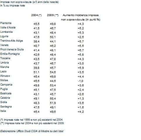 Secondo un’ indagine della CGIA di Mestre, un’ impresa su due (precisamente il 49,6%) chiude i battenti entro i primi 5 anni di vita. Un dato molto preoccupante che segnala la grave difficoltà che stanno vivendo le imprese, soprattutto quelle guidate da neoimprenditori.