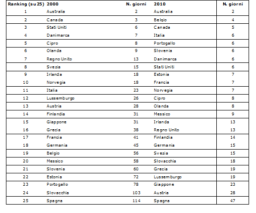 Tab. 2 – Tempo per avviare un’impresa (numero di giorni)