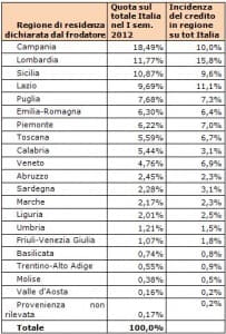In fortissima crescita l’incidenza di frodi avvenute in Basilicata (+29,5% rispetto al I semestre 2011) e in Campania (+19,6%).