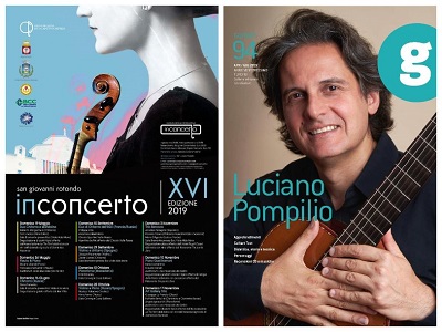 Si tratta di un attesissimo momento del calendario culturale di San Giovanni Rotondo che deve il suo successo e ringrazia doverosamente: la Regione Puglia, Casa Sollievo della Sofferenza, il Credito Cooperativo di San Giovanni Rotondo, tutti gli Sponsor ed i numerosi collaboratori che hanno reso possibile questa grande iniziativa ed opportunità sia per i musicisti che per le aziende locali”. Il Maestro Luciano POMPILIO è un musicista straordinario che, nonostante continui a raggiungere innumerevoli successi, riesce sempre a coinvolgere altri artisti, permettendo inoltre a tutti di avvicinarsi e conoscere meglio il panorama musicale sia italiano che non. In questa nuovissima rassegna, anche i prodotti tipici potranno venire valorizzati, con un connubio eccellente di suoni e gusti. Luciano POMPILIO: Si diploma in chitarra classica nel 1990 presso il Conservatorio “U. Giordano” di Foggia, con il massimo dei voti. Parallelamente studia Musicologia presso l’Università di Lettere e Filosofia di Bologna, conseguendo la Laurea D.A.M.S. con l’analisi del Nocturnal di Britten in Semiologia della musica. Dopo importanti esperienze solistiche e con varie formazioni, si è unito in duo con G. Caputo, imponendosi all’attenzione della stampa e degli addetti ai lavori, vincendo in questa formazione 25 concorsi con 15 primi premi assoluti, tra i quali spicca il concorso di Montelimar (Francia), il concorso più importante al mondo per Duo di Chitarra.