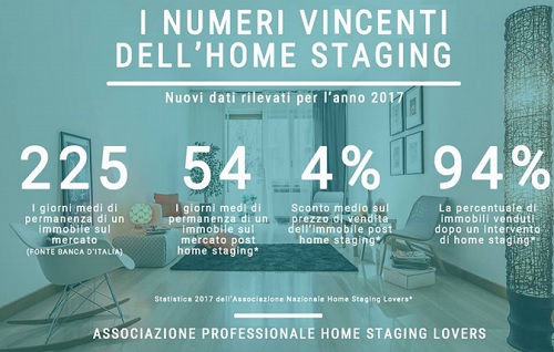 «Sono tutti dati che confermano la validità del lavoro svolto dagli home stager italiani, sempre più riconosciuti come figure chiave del mercato immobiliare, sia dagli addetti ai lavori, sia dal pubblico, che oggi comprende come l’investimento in home staging venga subito ripagato» afferma la presidente di Home Staging Lovers. Fino a pochi anni fa, infatti, la figura dell’home stager era poco conosciuta in Italia. Si tratta di un professionista che unisce diverse competenze – design d’interni, decorazione, fotografia e marketing immobiliare – per preparare le abitazioni alla vendita o all’affitto. Non una ristrutturazione, ma un allestimento temporaneo basato su colori, complementi d’arredo, elementi decorativi e illuminazione, completato da un servizio fotografico, studiato per attrarre il giusto target di compratori.