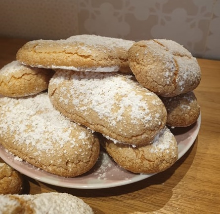 Aiutandoci con un sac a poche (ma vanno bene anche 2 cucchiai se non si vuole fare la forma allungata tipica del savoiardo) modellismo dei bastoncini su una teglia foderata con carta forno