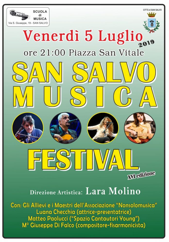 Venerdì, 5 luglio, in piazza San Vitale, a San Salvo, si terrà la XVI edizione di “San Salvo Musica Festival”, organizzata dalla locale Associazione Culturale “Nonsolomusica” e dall’Assessorato alla Cultura della Città di San Salvo. La direzione artistica della manifestazione, curata dalla cantautrice Lara Molino, anche quest’anno ha voluto dare spazio ai giovani e talentuosi musicisti di “Nonsolomusica”, provenienti da varie città abruzzesi e molisane: Vasto, Lentella, Fresa, Termoli, Cupello, Mafalda e San Salvo. Ragazzi e ragazze dai 10 ai 30 anni che hanno frequentato i corsi di musica organizzati dall’Associazione durante l’anno e che, nel corso dello spettacolo, proveranno ad ammaliare il pubblico con le loro perfomances canore e musicali.