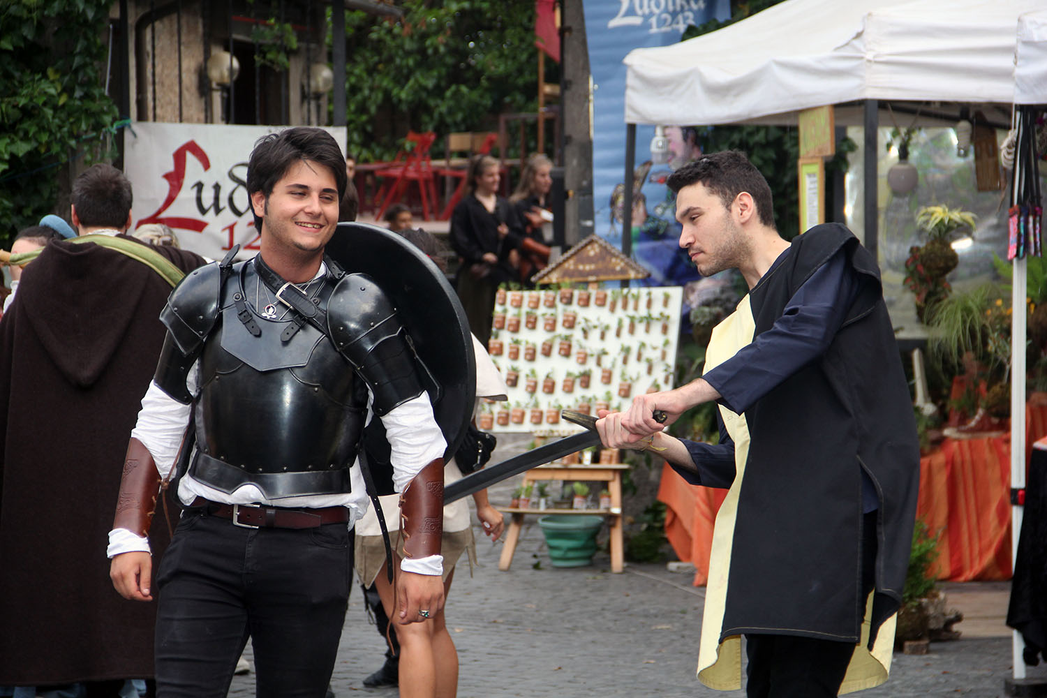 Come sempre l’inaugurazione rispetta il canone del tempo, niente tagli del nastro, sebbene sia piacevolmente gradita la presenza dell’assessore De Carolis, che ha partecipato in rappresentanza dell’amministrazione. Ludika1243 inizia sempre dando voce e strada ai suoi protagonisti: giullari, musici, dame, cavalieri si radunano in piazza per annunciare alla città l’inizio della manifestazione. La loro parata anima anche la parte “più moderna” del centro, perché tutti possano comprendere che è arrivato il momento del gioco.