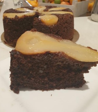 -Distribuire gli spicchi di pera alla base di una tortiera e versare su il composto