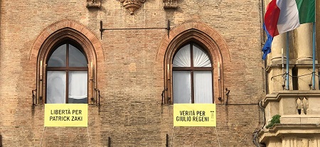 Dalla mattina di oggi, giovedì 5 marzo, sulla facciata di Palazzo d’Accursio è esposto uno striscione con la scritta “Libertà per Patrick Zaky”, accanto a quello di Amnesty International per chiedere “Verità per Giulio Regeni”. Si tratta di un gesto simobolico, fortemente voluto dal Sindaco Virginio Merola per tenere alta l’attenzione sullo studente egiziano del Master Gemma dell’Università di Bologna, arrestato dalla polizia al suo arrivo a Il Cairo, lo scorso 6 febbraio scorso e tuttora detenuto.