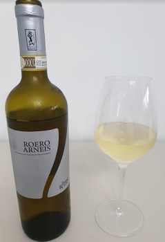 Il vino: il Roero Arneis 2017 di Emanuele Rolfo dopo la fermentazione matura in vasca d’acciaio. E’ un vino di buona struttura (13,5% gradi alcolici) che può resistere in bottiglia anche per qualche anno. Il colore è un bel giallo paglierino, compatto e cristallino. Al naso, secondo le caratteristiche classiche dell’Arneis, prevalgono i profumi di frutta bianca, in particolare di pera e quelli floreali. Al sorso esprime una gradevole acidità ed una piacevole bevibilità, con una nota sapida interessante. Si tratta di un vino intelligente, specie se osservato con la metrica del rapporto qualità prezzo. Con un costo assai contenuto si ottiene una bottiglia di qualità, ideale per accompagnare antipasti di pesce, carni bianche e risotti.
