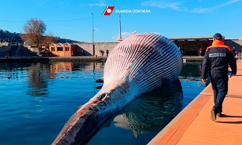 Le operazioni di messa in sicurezza dell’esemplare si sono protratte per diverse ore, consentendo poi il rimorchio reso particolarmente difficile dalle dimensioni della carcassa e protrattosi per tutta la notte a causa delle condizioni del mare in peggioramento. Il recupero dal mare della carcassa – programmato verosimilmente per il pomeriggio di oggi ad opera di un cantiere navale del porto di Napoli – vedrà coinvolti anche i subacquei della Guardia Costiera di Napoli, oltreché il personale del Reparto Operativo del Comando Generale della Guardia Costiera che ha inviato sul posto il proprio Laboratorio ambientale mobile con i suoi biologi che affiancheranno gli scienziati nelle successive operazioni necroscopiche.