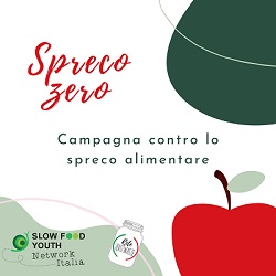 Contro lo spreco alimentare Slow Food Youth Network Italia e Rete Zero Waste uniscono le forze e lanciano la campagna di sensibilizzazione Spreco Zero, che presenterà contenuti di approfondimento e racconterà realtà che ogni giorno si occupano di trasformare lo spreco alimentare da criticità a risorsa. La campagna si svilupperà sui canali social di SFYN Italy (Instagram e Facebook) e della Rete Zero Waste (Instagram e Facebook).