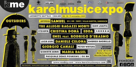 Cagliari ospita la quindicesima edizione del Karel Music Expo:anteprima il 3 settembre a Villa Siotto a Sarroch con Samuel e un appuntamento conclusivo il 12 settembre a cura di I Love Sardegna. Tra i protagonisti del festival artisti nazionali e internazionali come Daniele Celona, Giorgio Canali, Emel e Rodrigo D’Erasmo, Maria Basel, Edda, Cristina Donà, Tre Allegri Ragazzi Morti.