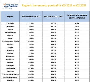 Calabria (+10,6% rispetto a giugno), Campania (+6,4%) e Sicilia (+5,6%) sono le regioni che fanno segnare l’incremento più elevato dei pagamenti puntuali, ma nonostante questo rimangono in coda nel ranking italiano della puntualità. La Sicilia, con il 20,9% di aziende che pagano alla scadenza, è in ultima posizione, preceduta da Calabria (22,9%) e Campania (24,8%). Guida la classifica la Lombardia (47,4%), seguita da Emilia – Romagna (46%), Veneto (45,8%), Friuli – Venezia Giulia (45,1%) e Marche (43,8%). In base allo Studio di CRIBIS, il primato negativo per quanto riguarda i pagamenti oltre i 30 giorni va, nell’ordine, a Sicilia, Calabria e Campania, rispettivamente con il 20,7, il 19,8 e il 18,6%. La Calabria, però, è fra le regioni dove i pagamenti in grave ritardo sono diminuiti più che altrove rispetto a giugno (-10,4%), preceduta solo da Friuli -Venezia Giulia (-10,9%) e Trentino – Alto Adige (-11,1%).
