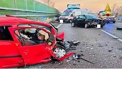 I vigili del fuoco hanno messo in sicurezza i mezzi ed estratto da una piccola utilitaria l’autista rimasto incastrato.