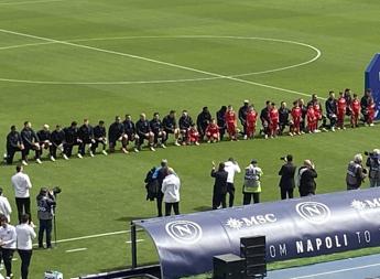 Napoli, giocatori in ginocchio per dire no al razzismo