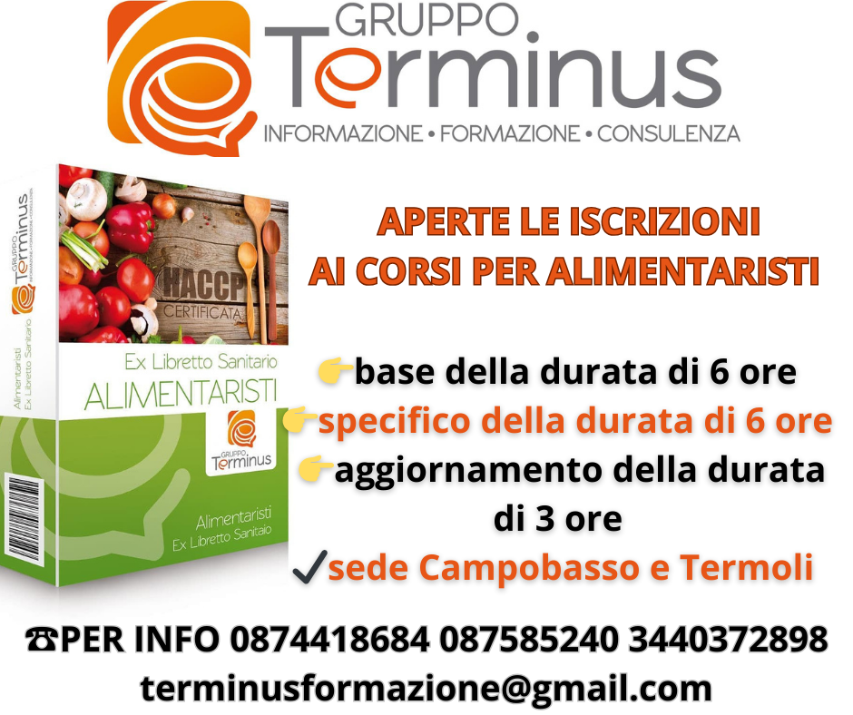 I corsi verranno svolti AI SENSI DGR N. 372/2008 – CIRC. N. 6 DEL 02/10/2008 CIRCOLARE REGIONE MOLISE UFF. SICUR. ALIM. N. 3 E 4 DEL 2013
