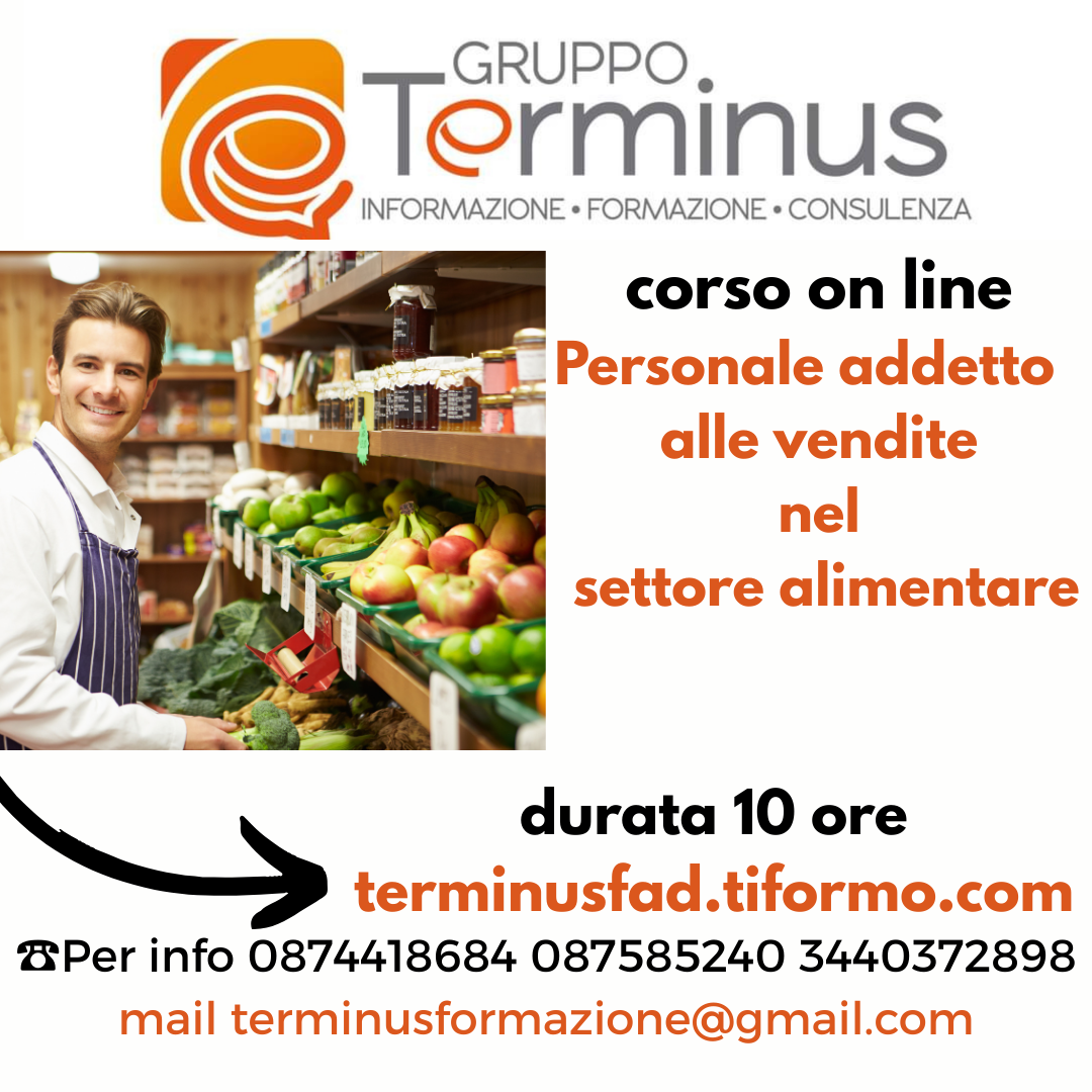 Corso on line “PERSONALE ADDETTO ALLE VENDITE NEL SETTORE ALIMENTARE”