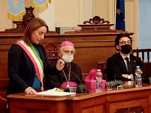 Cerimonia di scambio degli auguri stamane, a Palazzo di Città, alla presenza di Sua Eccellenza, il Vescovo Diocesano, Mons. Luigi Mansi.