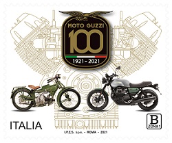 Poste Italiane comunica che oggi 11 settembre 2021 viene emesso dal Ministero dello Sviluppo Economico un francobollo ordinario appartenente alla serie tematica “le Eccellenze del sistema produttivo ed economico” dedicato alla Moto Guzzi, nel centenario della fondazione, al valore della tariffa B zona 1 pari a 1,15€.