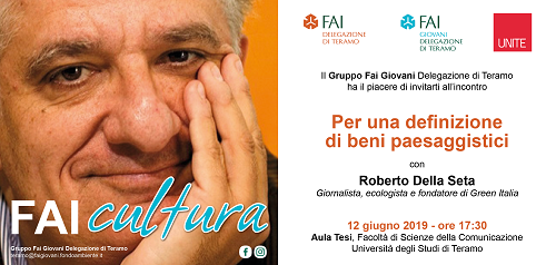 Mercoledì 12 giugno alle ore 17:30 nell’Aula Tesi della Facoltà di Scienze della Comunicazione, il giornalista Roberto Della Seta chiuderà il ciclo di incontri formativi organizzati dal Gruppo FAI Giovani di Teramo.